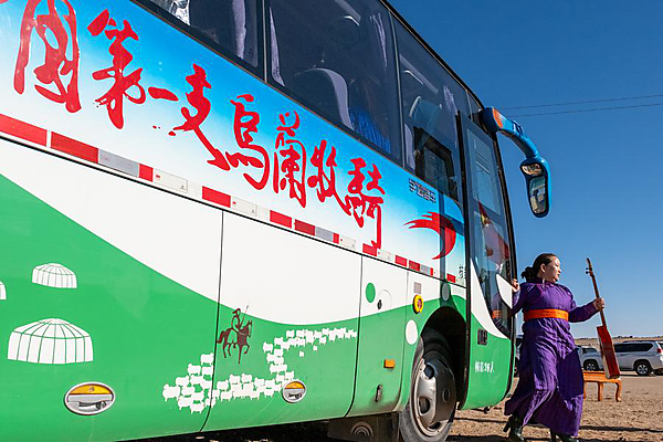 "Our performance goes to every place where herders live," Oyunjargal said. He and troupe members loaded their instruments and sound equipment onto a flow stage bus and drove to a border guard station in Jihuulengt Gacha of Erenuur Sumu, bringing a cultural performance to border patrolmen and herders there.