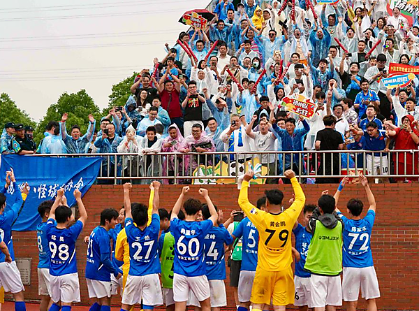 | Players of Yangzhou greet supporters after winning the third round match against Changzhou at the 2025 Jiangsu Football City League (JSCL) in Changzhou, May 31, 2025. [Xinhua] |