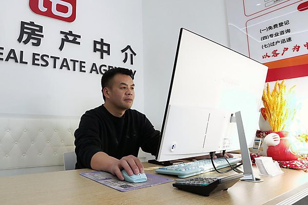 | At a real estate agency in Altay City, real estate agent Tang Bin is checking property listings online, Jan 20, 2026. [Xinhua/Aman] |