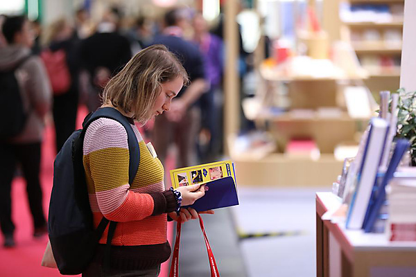 | A woman visits the Frankfurt Book Fair in Frankfurt, Germany, Oct. 16, 2025. [Xinhua/Du Yu] |