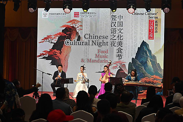 | People enjoy Chinese traditional instrumental works during the Chinese culture night event at the Chinese Embassy in Kuwait in Hawalli Governorate, Kuwait, Nov. 26, 2025. [Photo by Asad/Xinhua] |