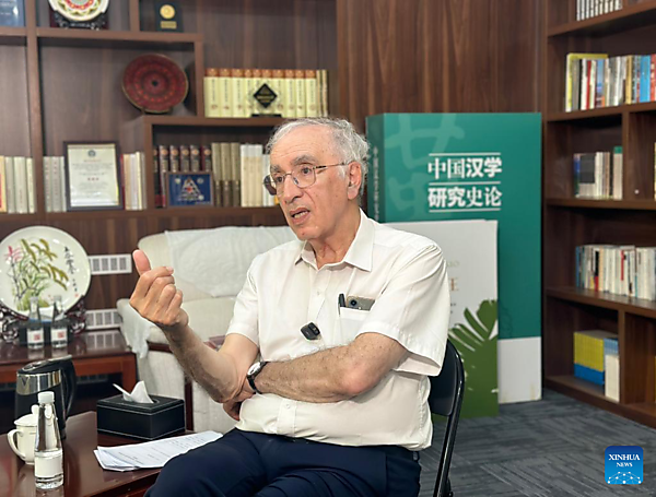 | Joel Bellassen speaks during an interview with Xinhua at the World Sinology Center of Beijing Language and Culture University in Beijing, capital of China, June 5, 2025. [Xinhua/Shi Yifei] |