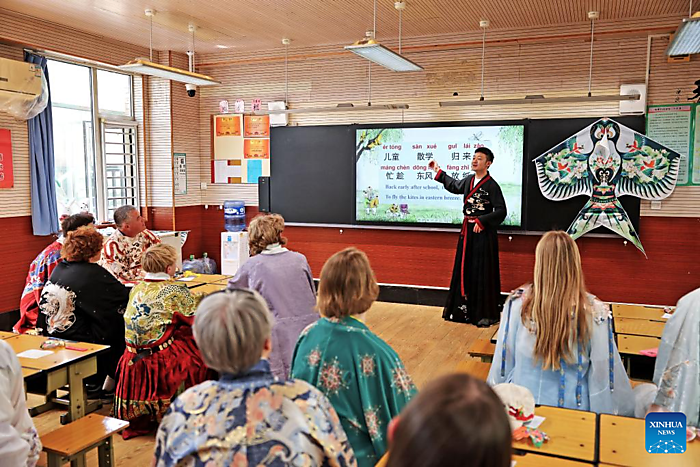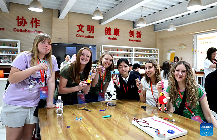 | Students from the United States make handicrafts at a school in Shijiazhuang, north China's Hebei Province, April 11, 2026. [Xinhua/Lu Ye] |