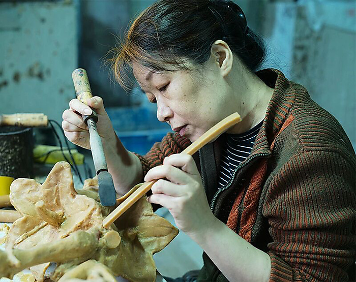 As a child, Zhou had a keen interest in painting. After she joined the Shanghai Children's Palace painting class, at age 7, she was drawn to the sculpting class, which was next door to her painting class. "I was very curious about sculpting, and I often went there to knead clay and watch how sculpting tools were used," she recalls.