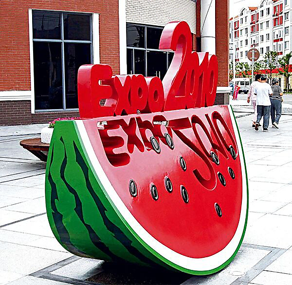 Sweet Watermelon, created in 2006, is one of her most representative urban sculptures. At that time, during preparations for 2010 Shanghai World Expo, as part of urban renewal, residents of Laochengxiang, the old city of Shanghai, were relocated to the suburbs of Pudong New District, to accommodate construction ahead of the Expo.