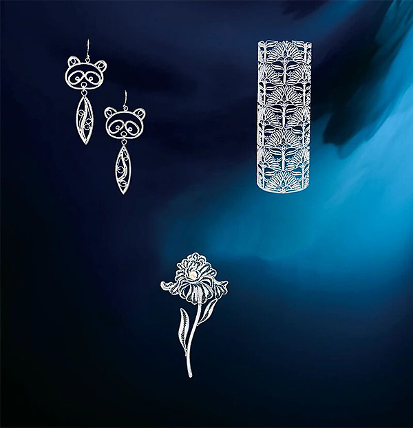 In 2008, Dao's daughter, Wang Xiaolu, became a second-generation inheritor of Chengdu silver filigree. When Wang was in college, she took an optional course in tourism-craft design and manufacturing. She tried designing silver-filigree earrings, eardrops and other accessories. Initially, she wore her silver accessories; later, she sold her crafts at an intangible-cultural-heritage market. Now, Dao's studio has space dedicated to displaying silver-filigree accessories. Wang is in charge of that section. Wang has integrated the manufacturing of silver-filigree crafts with several other decoration skills, such as embossing, enameling and gem mounting.