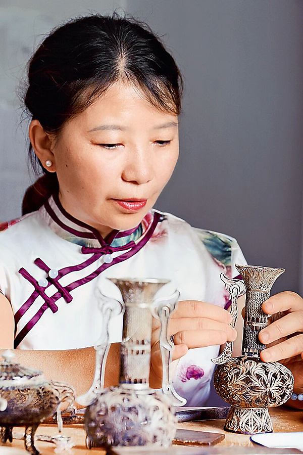 | Dao An, a national-level inheritor of Chengdu silver filigree |