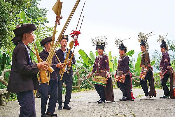 Li Jinying and Wang Fangyuan, a couple who live in Yanggao, a village in Paidiao, met and fell in love thanks to Jinji Dance. Li, 60, is a representative national-level inheritor of Jinji Dance while her husband, Wang, 63, is a representative provincial-level inheritor of the Miao people's craft of making Lusheng.