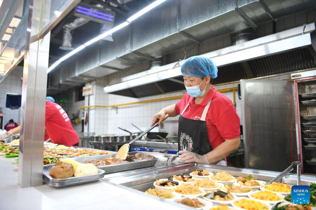 Elderly people dine at a canteen of Nanwenying Community in Rongdong District of the Xiong'an New Area, north China's Hebei Province, May 23, 2023. [Xinhua/Zhu Xudong]