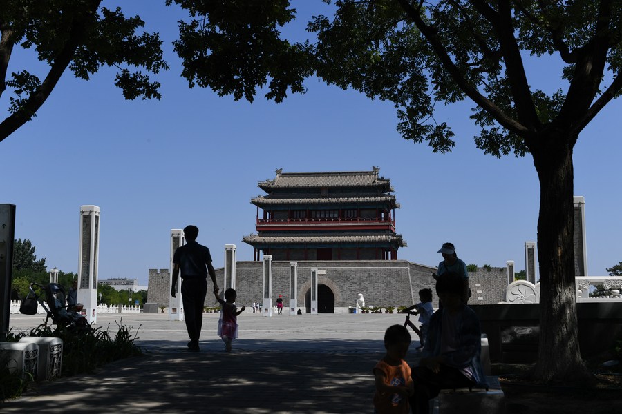 People have fun in front of the Yongding Gate in south Beijing, capital of China, June 6, 2023. [Xinhua/Ju Huanzong]