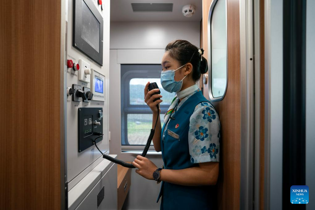 Yi Bofeng hails from Mengla County in Yunnan Province. After graduating as a Lao major from a technical college in the provincial capital Kunming in 2020, she was recruited as a train attendant under China Railway Kunming Bureau Group Co., Ltd.