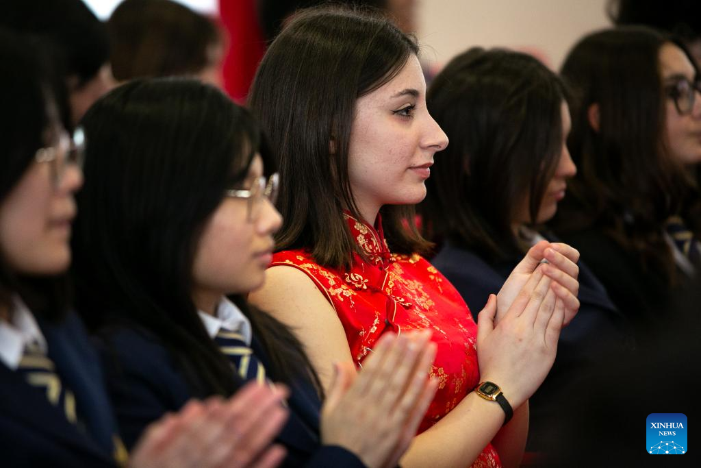 Students of Rome Convitto Nazionale Vittorio Emanuele II watch a Chinese show in Rome, Italy, March 25, 2024. [Xinhua/Li Jing]