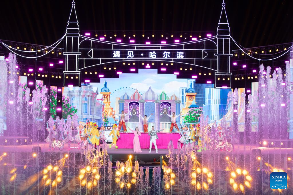 The live-action performance "Encounter Harbin" is staged at Sun Island scenic spot in Harbin, northeast China's Heilongjiang Province, June 10, 2024. [Xinhua/Zhang Tao]