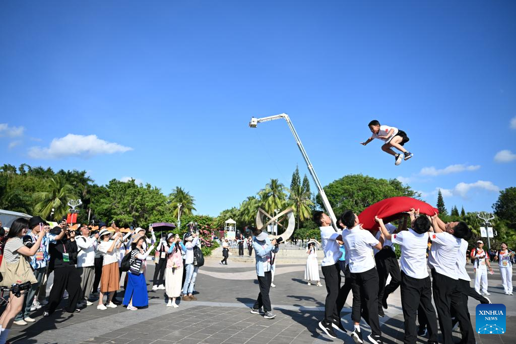 Visitors enjoy a performance gala of the 12th National Traditional Games of Ethnic Minorities of China in Sanya, south China's Hainan Province, Nov. 26, 2024. [Xinhua/Zhang Bowen]