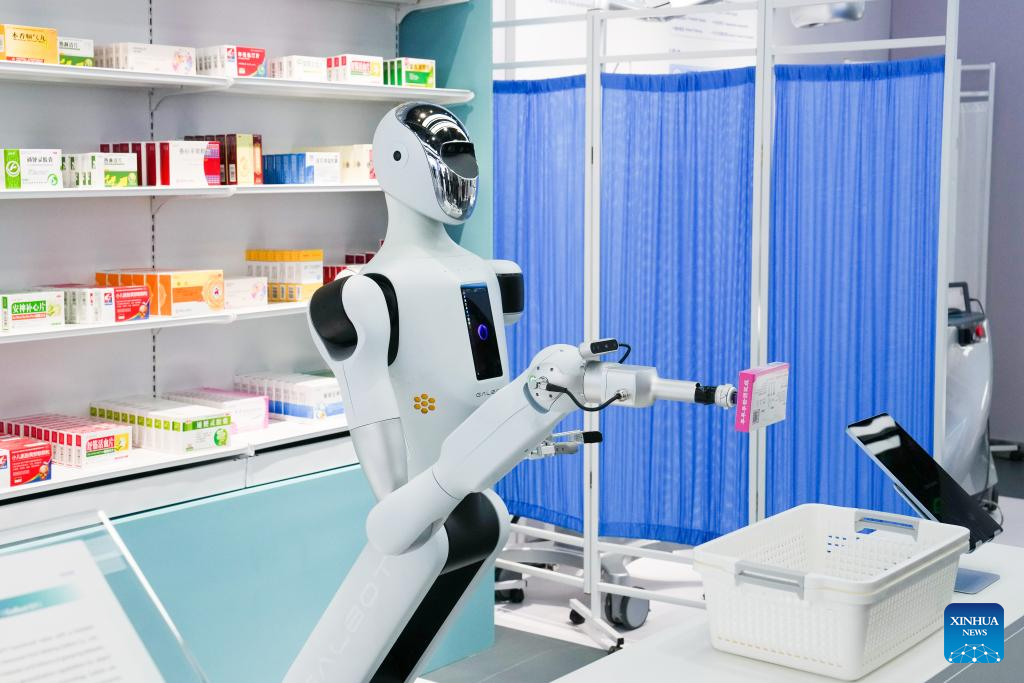 A robot from Galbot operates in an unattended scenario at the Beijing World of Robots in Beijing, capital of China, Feb. 24, 2025. The Beijing World of Robots is located in the robotics industrial park in Beijing's Yizhuang and serves as a comprehensive robot exhibition center, showcasing the latest achievements in robotics industry. [Xinhua/Ju Huanzong]