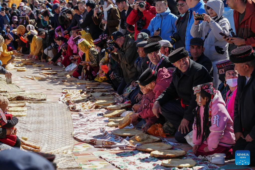 This photo taken on March 23, 2025 shows an intangible cultural heritage performance in Taxkorgan Tajik Autonomous County, northwest China's Xinjiang Uygur Autonomous Region. [Xinhua/Hu Huhu]