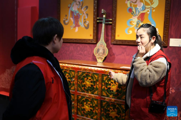 Furniture of Gold Lacquer Inlay Art are displayed at the Beijing Gold Lacquer Inlay Art Museum in Beijing, capital of China, Dec. 10, 2024. Gold Lacquer Inlay Art, a main category of traditional Chinese lacquer art, has a history of more than 7,000 years. The Beijing gold lacquer inlay art, developing on the basis of the imperial art dating back to the Ming (1368-1644) and Qing (1644-1911) dynasties, has formed a classically elegant and splendid Beijing-style. The art has been applied to a wide range of aspects in life, from pillars in ancient buildings, screens, thrones and furniture in the palace, to tableware, tea sets, writing materials and jewelry in people's daily life.