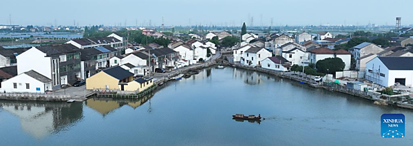 | Qian Shoutang poses with his apprentices on a black-awning boat in Shaoxing, east China's Zhejiang Province, June 12, 2025. The black-awning boat is unique transportation means in Shaoxing with a long history. The making technique of the black-awning boat was inscribed on the list of provincial intangible cultural heritage of Zhejiang in 2009. Qian Shoutang, 68, is a representative inheritor of the technique in Shaoxing. Born in a family with a black-awning boat making tradition, Qian has engaged himself in making boats for over half a century. Currently, Qian and his apprentices make more than ten black-awning boats each year, primarily for use in scenic areas. "As more and more people, especially young generation, are fascinated with traditional culture, it is meaningful for me to pass down the technique," said Qian. [Xinhua/Weng Xinyang] |
