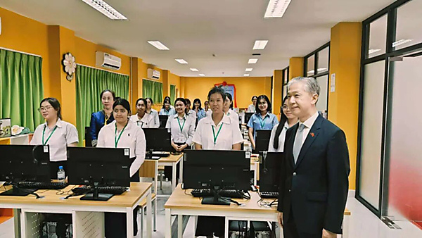 The ceremony inaugurating the Women's Economic and Entrepreneurship Development Center of Cambodia was held in Phnom Penh, capital of Cambodia, on December 3, 2025. Pich Chanmony, wife of Cambodian Prime Minister Hun Manet, Ing Kantha Phavi, Cambodian Minister of Women's Affairs, and Wang Wenbin, Chinese Ambassador to Cambodia, attended.