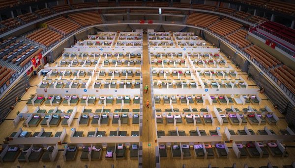 | Photo taken on February 12, 2020 shows the interior view of a temporary hospital converted from Wuhan Sports Center in Wuhan, central China's Hubei Province. [Xinhua/Xiao Yijiu] |