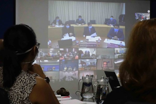 | Photo taken on March 23, 2020 shows the venue of an online meeting on COVID-19 pandemic prevention and control among representatives from China and Latin American and Caribbean countries in San Salvador, El Salvador. [Xinhua/Alexander Pena] |