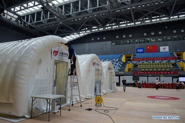 | Members of staff make preparations at a COVID-19 testing lab built with an air-inflated structure in Daxing District, Beijing, capital of China, June 22, 2020. [Xinhua/Peng Ziyang] |