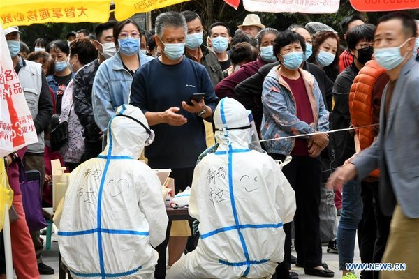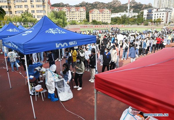 | Citizens queue for COVID-19 tests in Qingdao, east China's Shandong Province, Oct. 13, 2020. [Xinhua/Li Ziheng] |