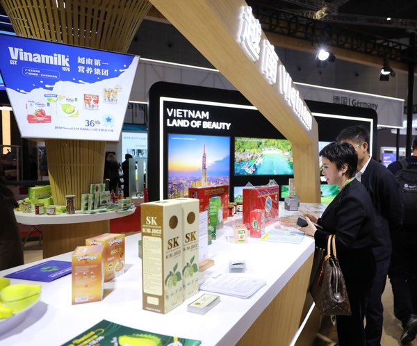 | People visit the booth of Vietnam at the 6th China International Import Expo (CIIE) in east China's Shanghai, Nov. 6, 2023. [Xinhua/Li Mengjiao] |
