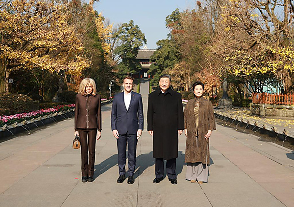 Upon their arrival, Macron and his wife, Brigitte Macron, were warmly received by Xi and his wife, Peng Liyuan. Welcoming them to Sichuan, known as the "Land of Abundance," Xi recalled his visit last year to the Hautes-Pyrenees Department at Macron's invitation. Xi said he believed that Macron's visit will help deepen his understanding of China.
