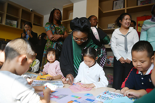 | Guests visit the women and children's social-services center of Shunyi District, in Beijing. |