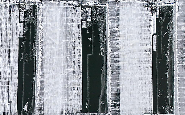 | An aerial drone photo shows an ice collection area at the Harbin section of Songhua River in Harbin, northeast China's Heilongjiang Province, Dec. 9, 2025. [Xinhua/Wang Song] |