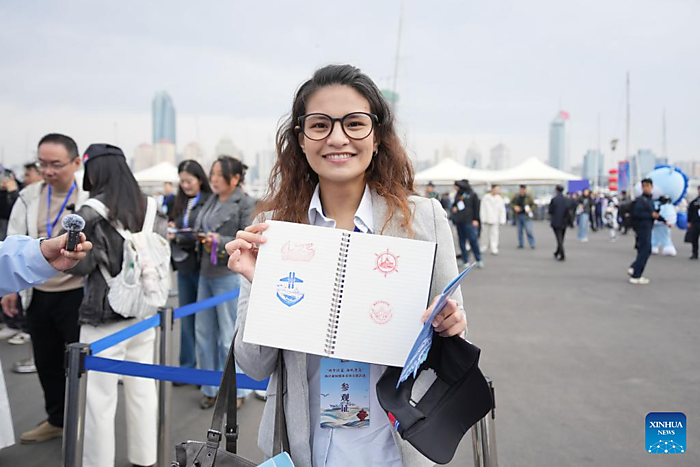 QINGDAO, April 23 (Xinhua) — A group of Taiwan compatriots on Thursday attended an open-day event celebrating the 77th anniversary of the founding of the People's Liberation Army (PLA) Navy in Qingdao, a city in east China's Shandong Province.