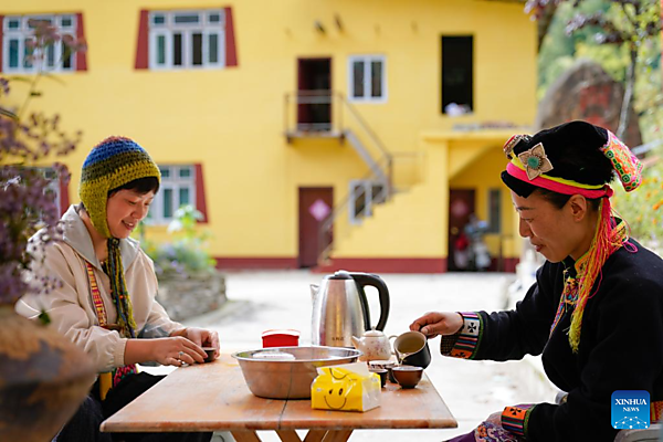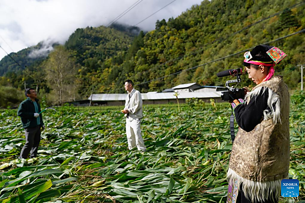 Nenkasman poses for a photo with her husband in front of their home in Qiaoqi Tibetan Township of Baoxing County, Ya'an City, southwest China's Sichuan Province, Oct. 8, 2025. Nenkasman, 40, hailing from Qiaoqi Tibetan Township in Baoxing County, Ya'an City, has been leading a diverse life. In 2007, Nenkasman and her husband started a family-run guesthouse and engaged in nature education. They led children participating in study tours onto pastures for hiking and bird-watching, collecting plants along the way to make specimens. Around a decade ago, Nenkasman began recording daily life and culture in her hometown with videos. During this process, she noticed that traditional skills once essential to local women — yak wool spinning and Qiaoqi floral sash weaving — were gradually fading as fewer people were willing to carry them on. Determined to protect and pass on these techniques, she established a textile handmade studio in 2016, combining traditional craftsmanship with innovative design to produce backpacks, scarves, belts, and other handicrafts. She marketed these products through fairs and online sales. As orders increased, Nenkasman shared them with village women, enabling them to earn extra income during the off-season of farming. More than 50 women have since engaged in the part-time job under her guidance. Today, Nenkasman's studio is attracting growing numbers of schools and craft enthusiasts for visits and hands-on experiences. In her Tibetan guesthouse, the culture space she established is taking shape, welcoming more visitors. [Xinhua/Xu Bingjie] |