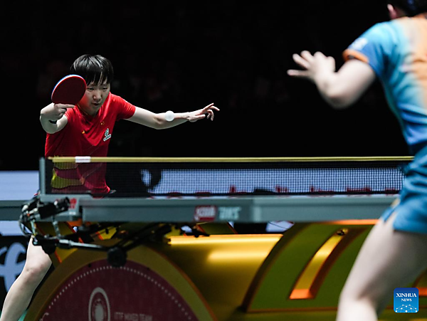 | Team members of China are seen before the final match between China and Japan at the ITTF Mixed Team World Cup 2025 in Chengdu, southwest China's Sichuan Province, Dec. 7, 2025. [Xinhua/Wang Xi] |