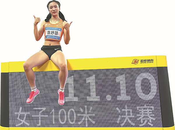 At the 15th National Games, Chen shone. She broke the women's U20 Asian record in the 100m with a personal best of 11.10 seconds on her way to winning gold.