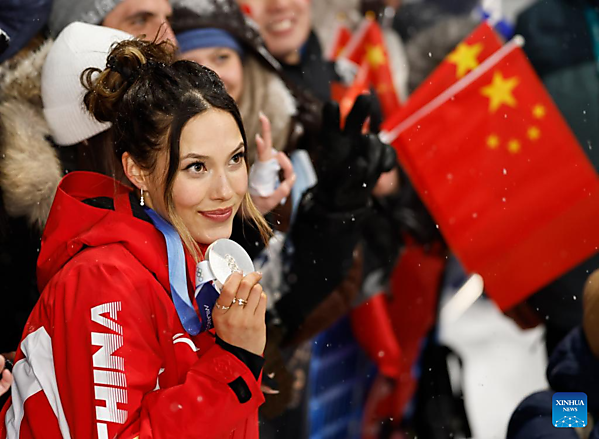 LIVIGNO, Italy, Feb. 16 (Xinhua) — China's defending champion Gu Ailing claimed silver in the women's freeski big air at Milan-Cortina 2026 on Monday, marking a strong return to the event after a four-year absence from international competitions.