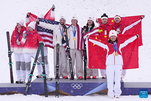 LIVIGNO, Italy, Feb. 21 (Xinhua) — A star-studded China lineup settled for bronze after costly errors in the freestyle skiing aerials mixed team event at Milan-Cortina 2026 on Saturday, while the United States claimed gold with steady jumps.