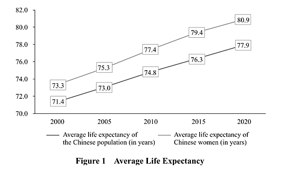 Remarkable improvement in women's health. In 2020, the average life expectancy of women in China rose to 80.9 years.