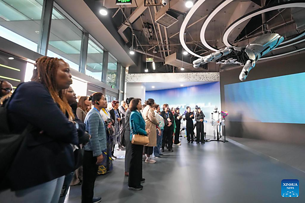 Representatives, who are in Beijing for the Global Leaders' Meeting on Women, visit the Beijing World of Robots in Beijing, capital of China, Oct. 14, 2025. [Xinhua/Du Zixuan]