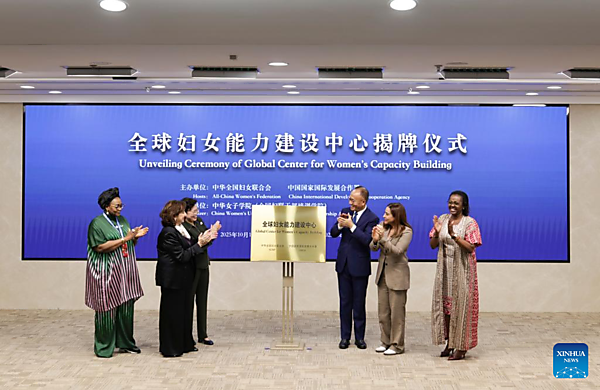The unveiling ceremony of Global Center for Women's Capacity Building is held in Beijing, capital of China, Oct. 14, 2025. The ceremony was held by the All-China Women's Federation and the China International Development Cooperation Agency on Tuesday. [Xinhua/Zhang Yuwei]