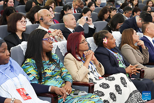 Attendees are pictured during the unveiling ceremony of Global Center for Women's Capacity Building in Beijing, capital of China, Oct. 14, 2025. The ceremony was held by the All-China Women's Federation and the China International Development Cooperation Agency on Tuesday. [Xinhua/Liang Xu]