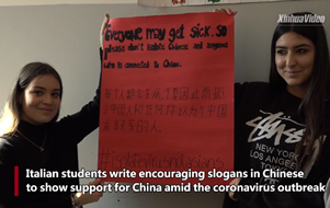 Italian Students Write Chinese Slogans to Support Anti-Epidemic Fight
