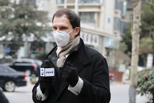 Gerard Buis, a Dutch student studying at Huazhong University of Science and Technology, shouts "Wuhan, Jiayou" in Wuhan, Central China's Hubei Province, on Feb 1, 2020. [China Daily/Zhu Xingxin]