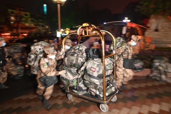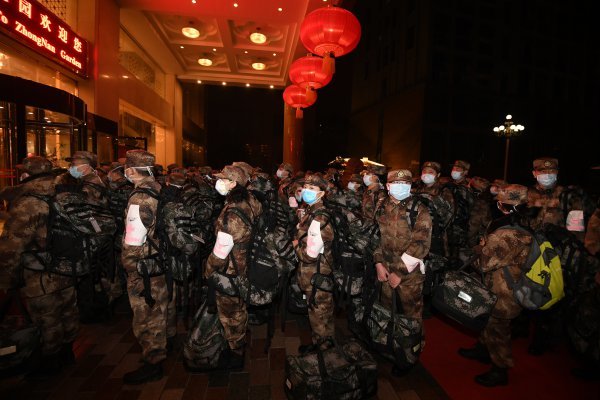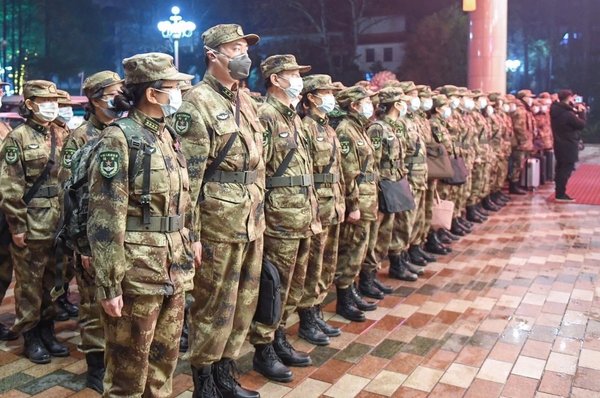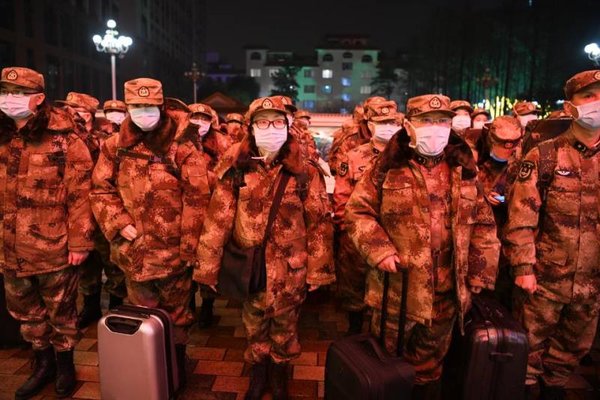 Military medical personnel arrive in Wuhan, Central China's Hubei Province, to fight the novel coronavirus pneumonia, Jan 24, 2020.[chinadaily.com.cn/Jin Zhenqiang]