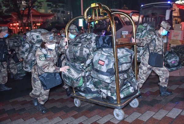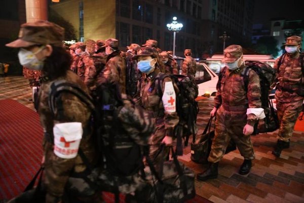 Military medical personnel arrive in Wuhan, Central China's Hubei Province, to fight the novel coronavirus pneumonia, Jan 24, 2020. [chinadaily.com.cn/Jin Zhenqiang]
