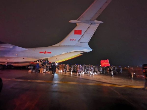 Military medical personnel arrive in Wuhan, Central China's Hubei Province, to fight the novel coronavirus pneumonia, Jan 24, 2020.[chinadaily.com.cn/Li Ziyun]