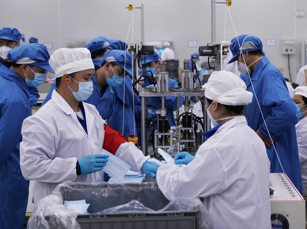 According to the Ministry of Industry and Information Technology, China's output of protective clothing surged to 500,000 pieces per day from fewer than 20,000 pieces at the beginning of the outbreak. The daily output of N95-rated medical masks rose from 200,000 to 1.6 million, while regular masks production reached 100 million.