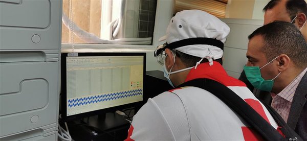 Experts adjust the lab equipment for the COVID-19 nucleic acid test in Baghdad, Iraq, on March 18, 2020. A Chinese team of seven health experts is providing guidance and medical assistance to contain the COVID-19 outbreak in Iraq. The experts are helping Iraqi health authorities prioritize response strategies, fill testing gaps and bring China's experience to benefit the worn-torn country. The Chinese expert team arrived in Baghdad on March 7 and is expected to stay in the country for one month. [Xinhua]