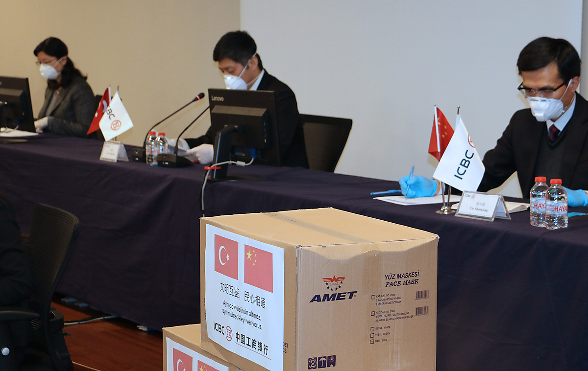 | The Turkish branch of the Industrial and Commercial Bank of China (ICBC) announces that it will donate medical supplies and cash to support Turkey in its combat against COVID-19 on March 27, 2020.[Xinhua] |