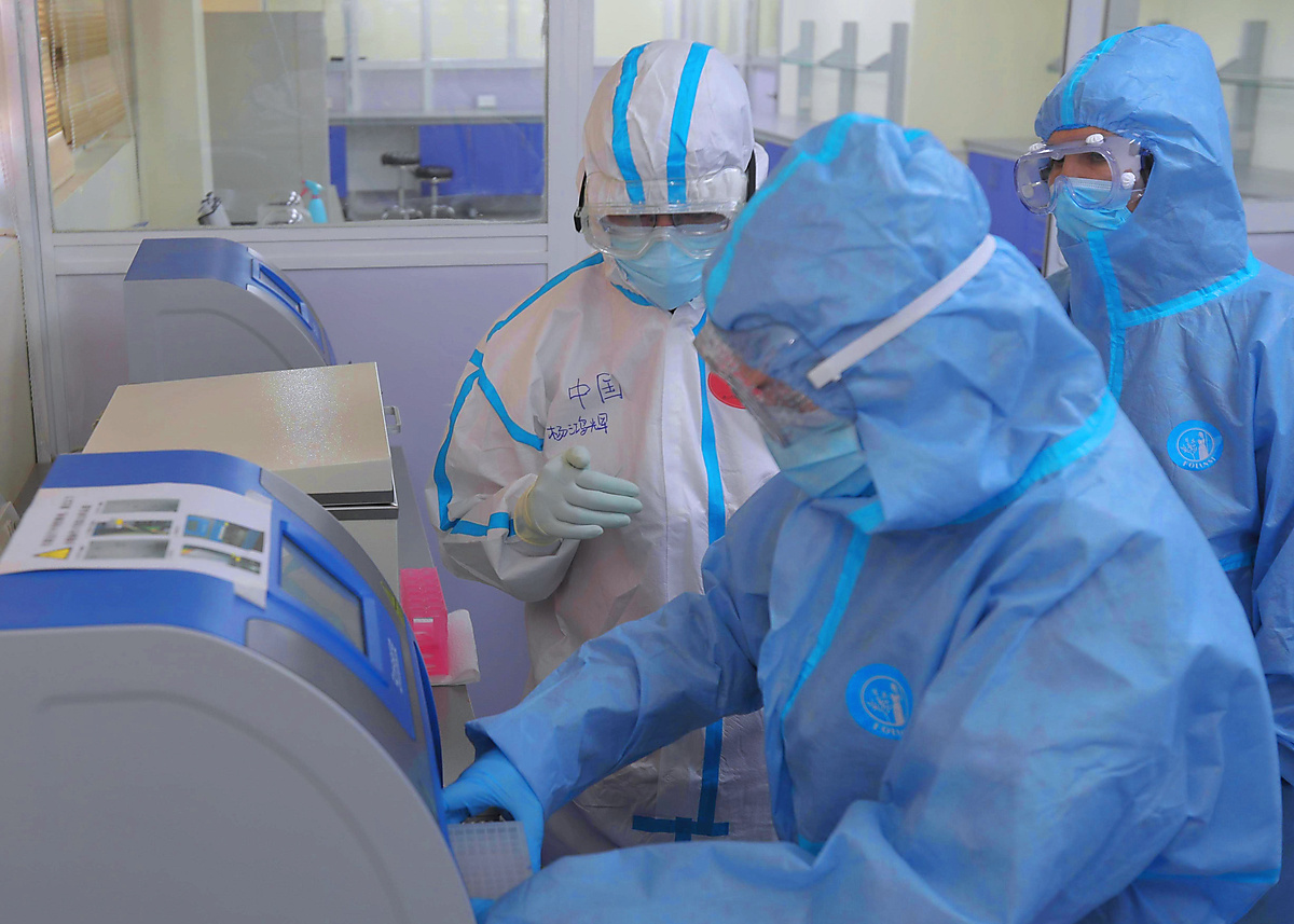 Besides helping build the test lab, the Chinese medical team also brought medical screening equipment such as mobile X-ray and CT. They trained health workers and shared clinical guidelines and experience in case management as well as infection prevention and control.